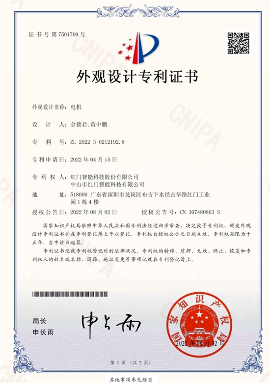 Design patent certificate